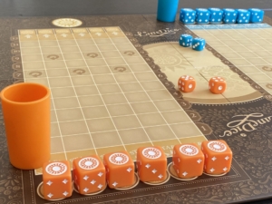 詳しいゲーム内容については別の記事でご紹介しますが、1ゲーム15分から遊べるバックギャモン風のスゴロク系ゲームで、運と実力のバランスが凄まじく良いゲームです!!