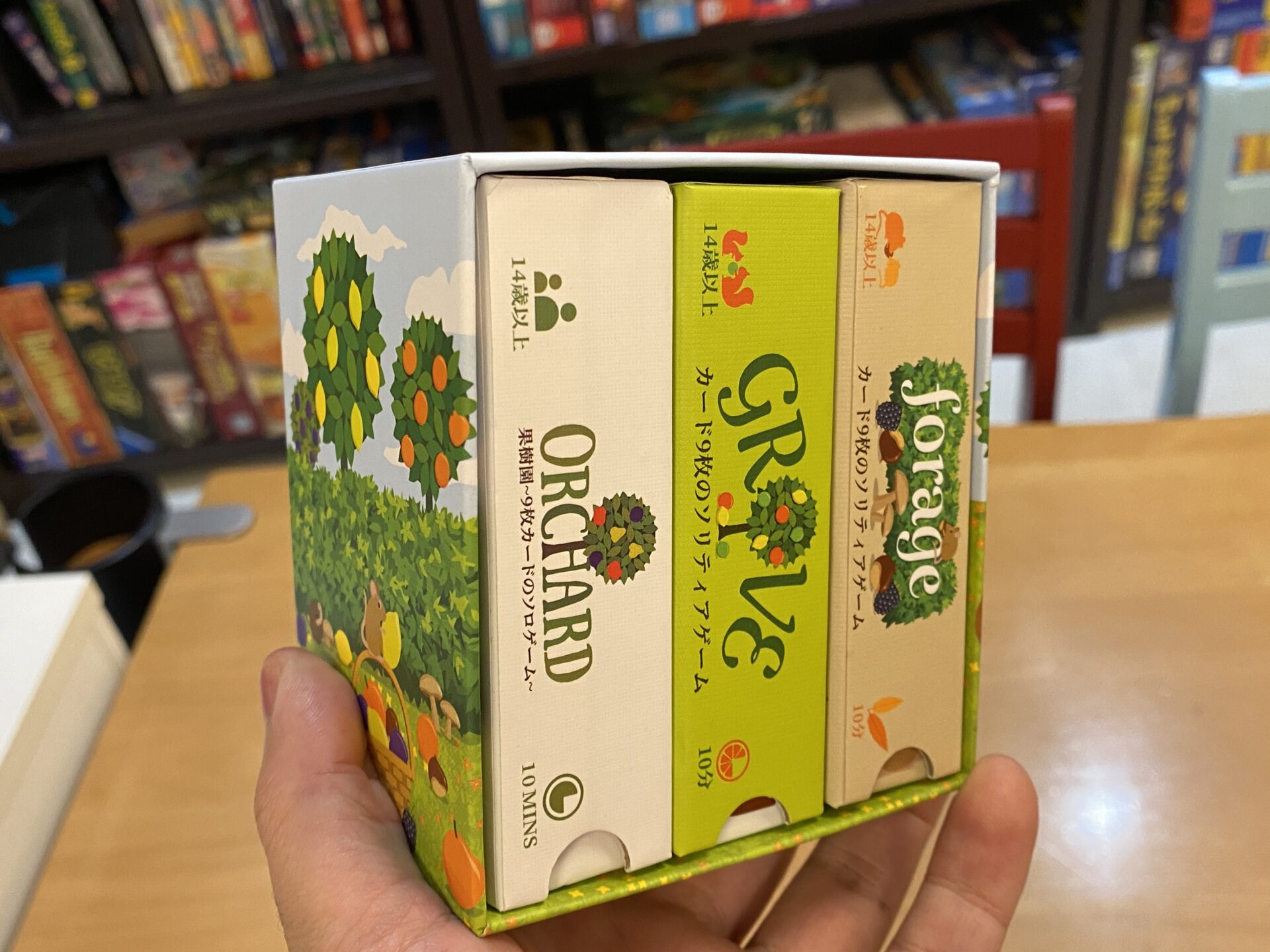 例:3人で遊ぶ場合、「オーチャード」が3箱必要。