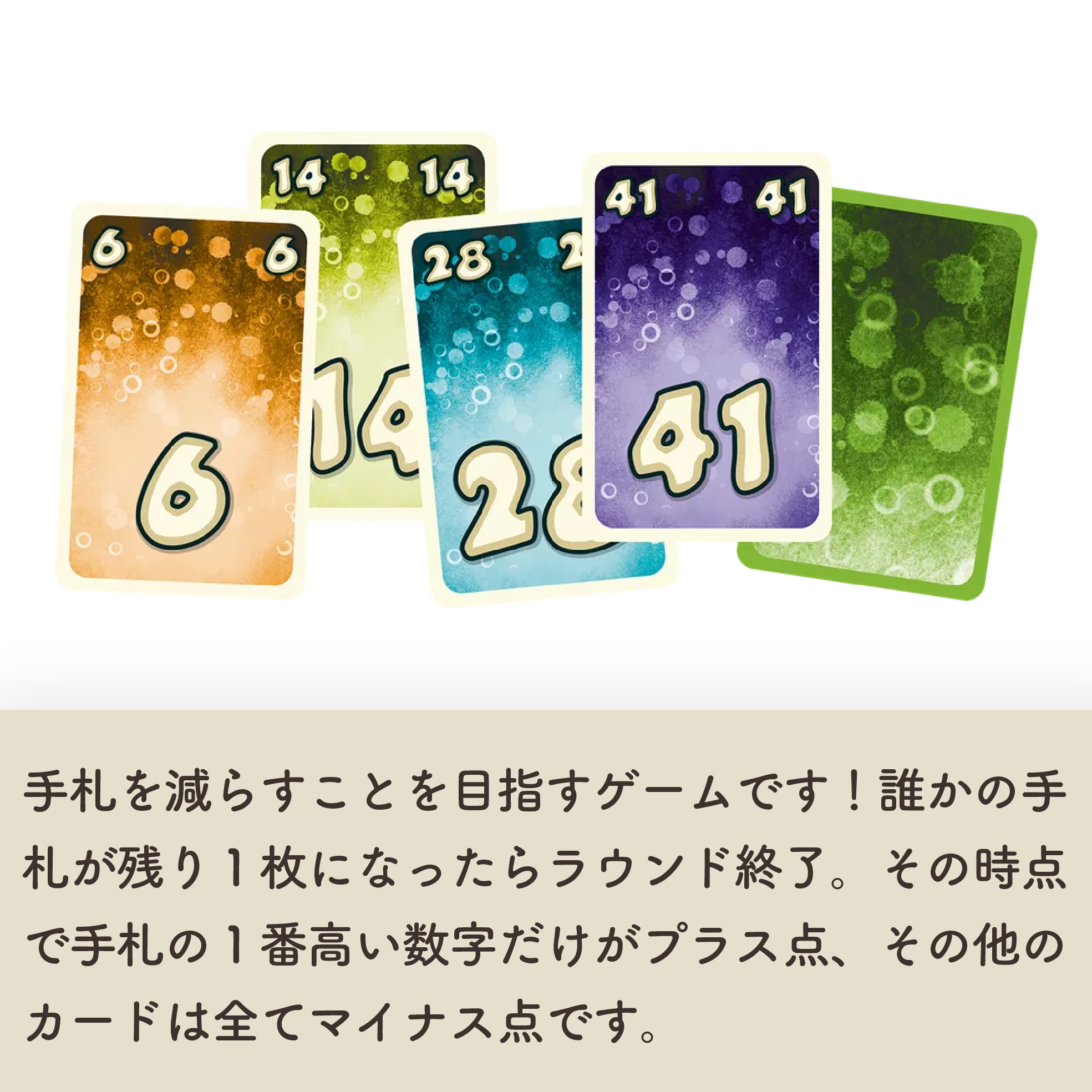 手札を残り1枚にした人が、いわゆる「上がり」なのですが、上がった人よりも上がってない人の点数が高いことも、しばしばあります。上がらないことを目指して手札コントロールをしても良い・・・