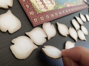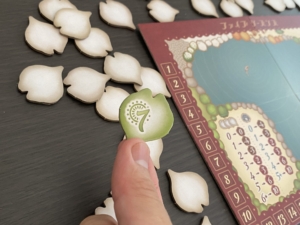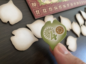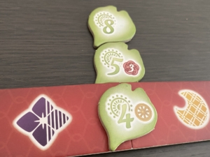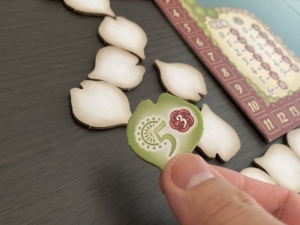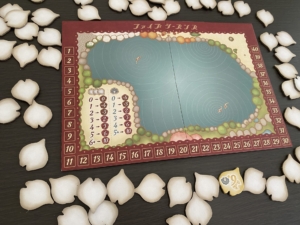 池に捨てたタイルは表向きのままとなり、これ以降手番で裏向きのタイルではなく、池に浮かんでいる表向きのタイルを選ぶことも可能です。