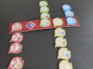 これは個人ボード。ここに自分のタイルを色ごとに並べていきます。