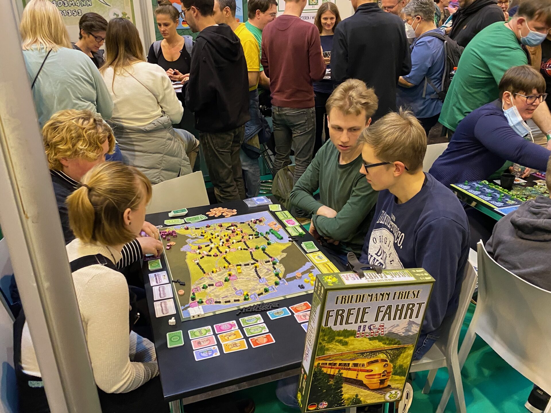 小箱の『フィッシェン』、大箱の『フリーライドUSA』ということで、今年ドイツで行われた見本市Essen Spiel’24では、この2タイトルが大々的に発表されていました。