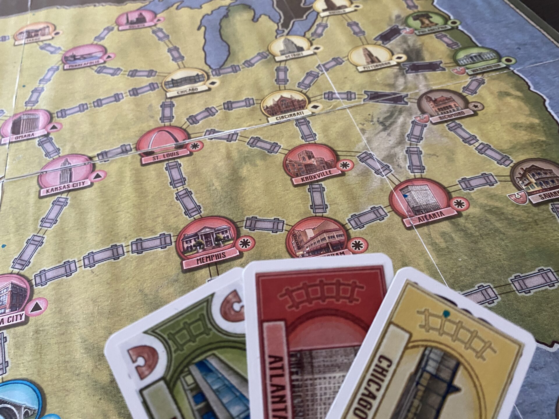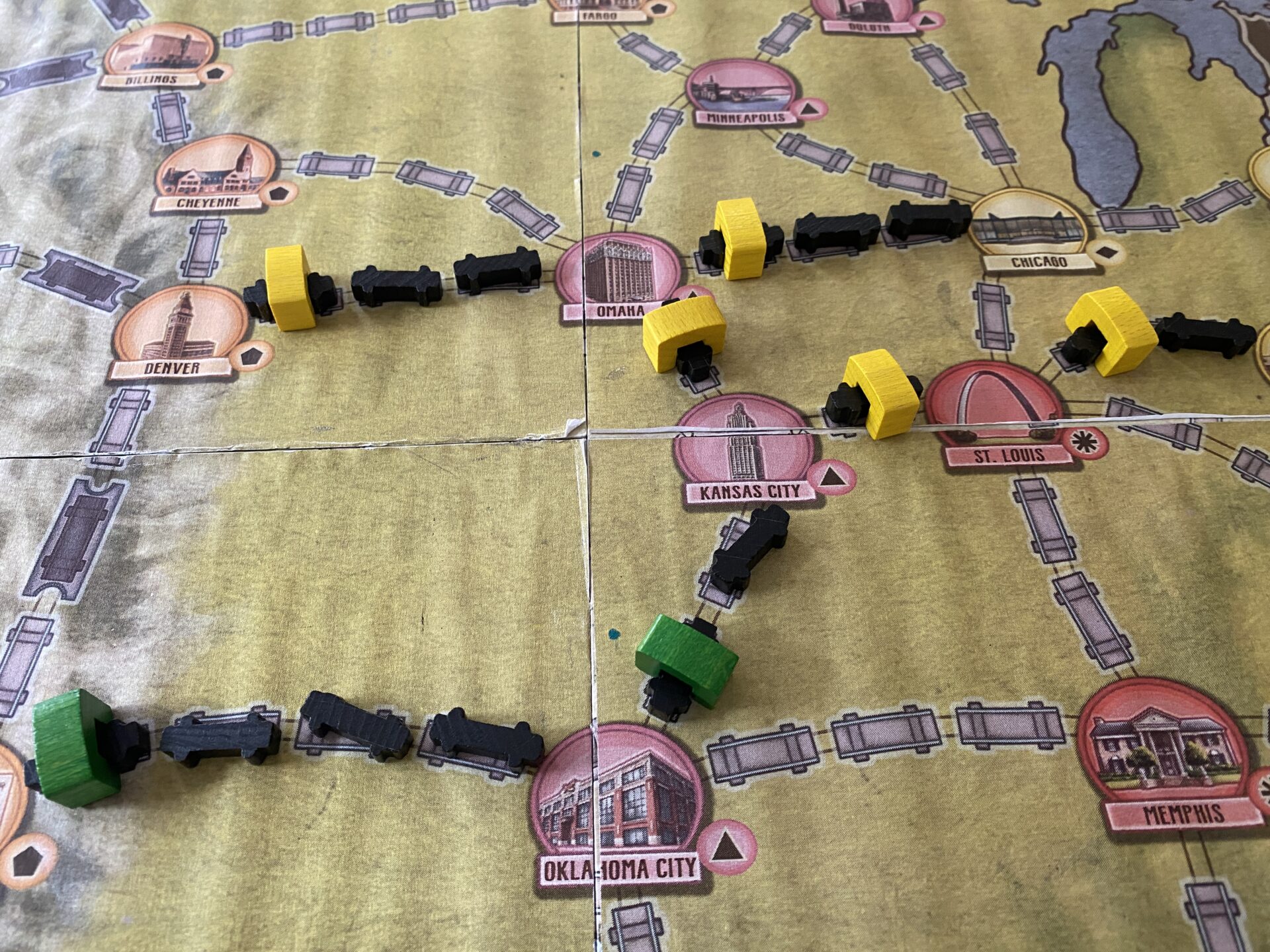 まず、プレイヤーは近代的な鉄道網を作らなければ移動できないので、各プレイヤーは自分の鉄道を引いていきます。