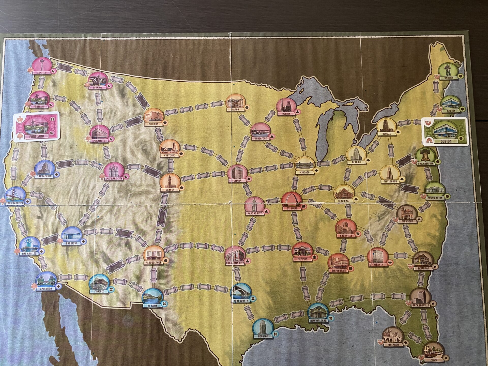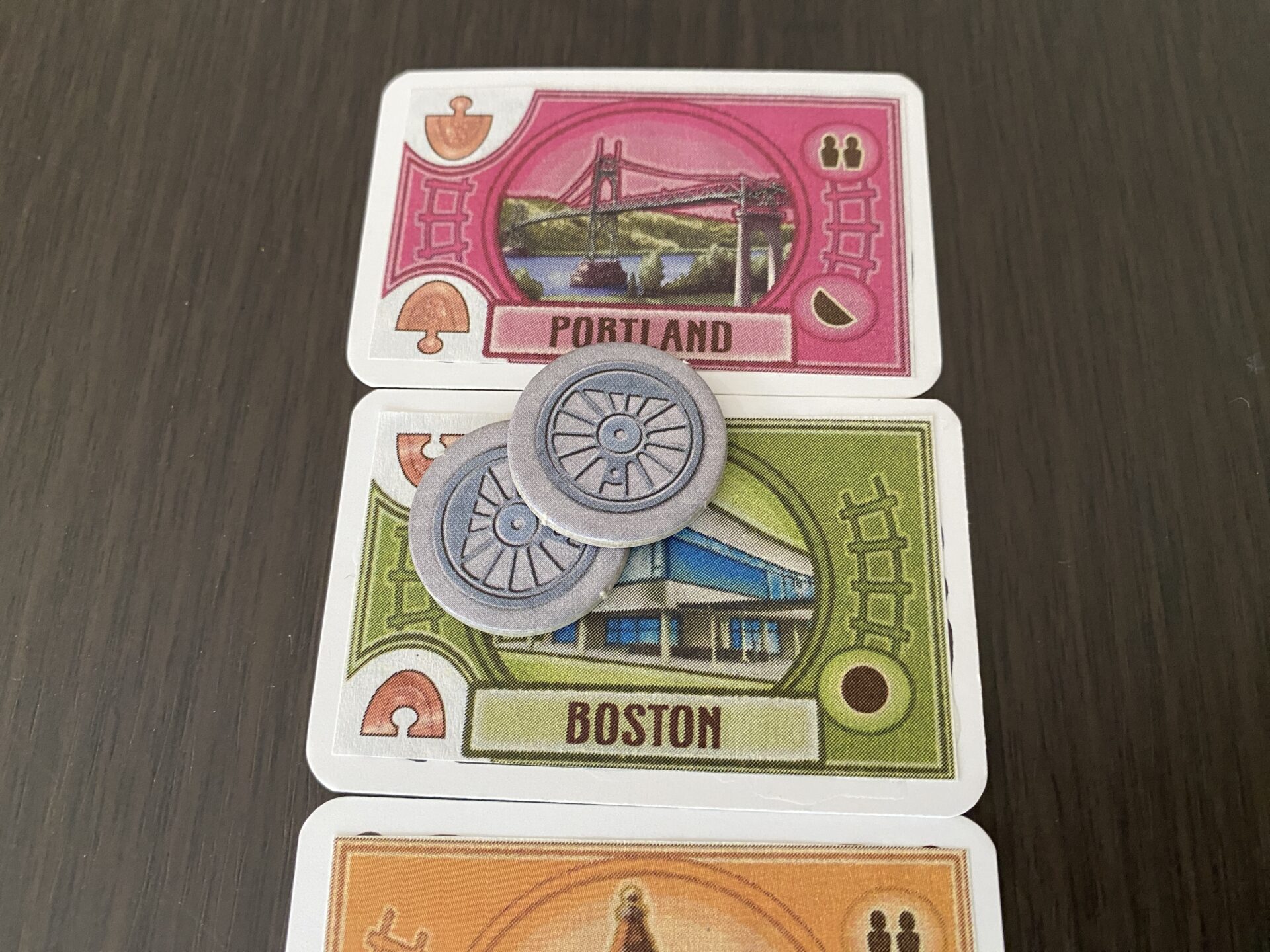 図:カードが置いてある場所を参照ください。ポートランドからボストンのルートです。